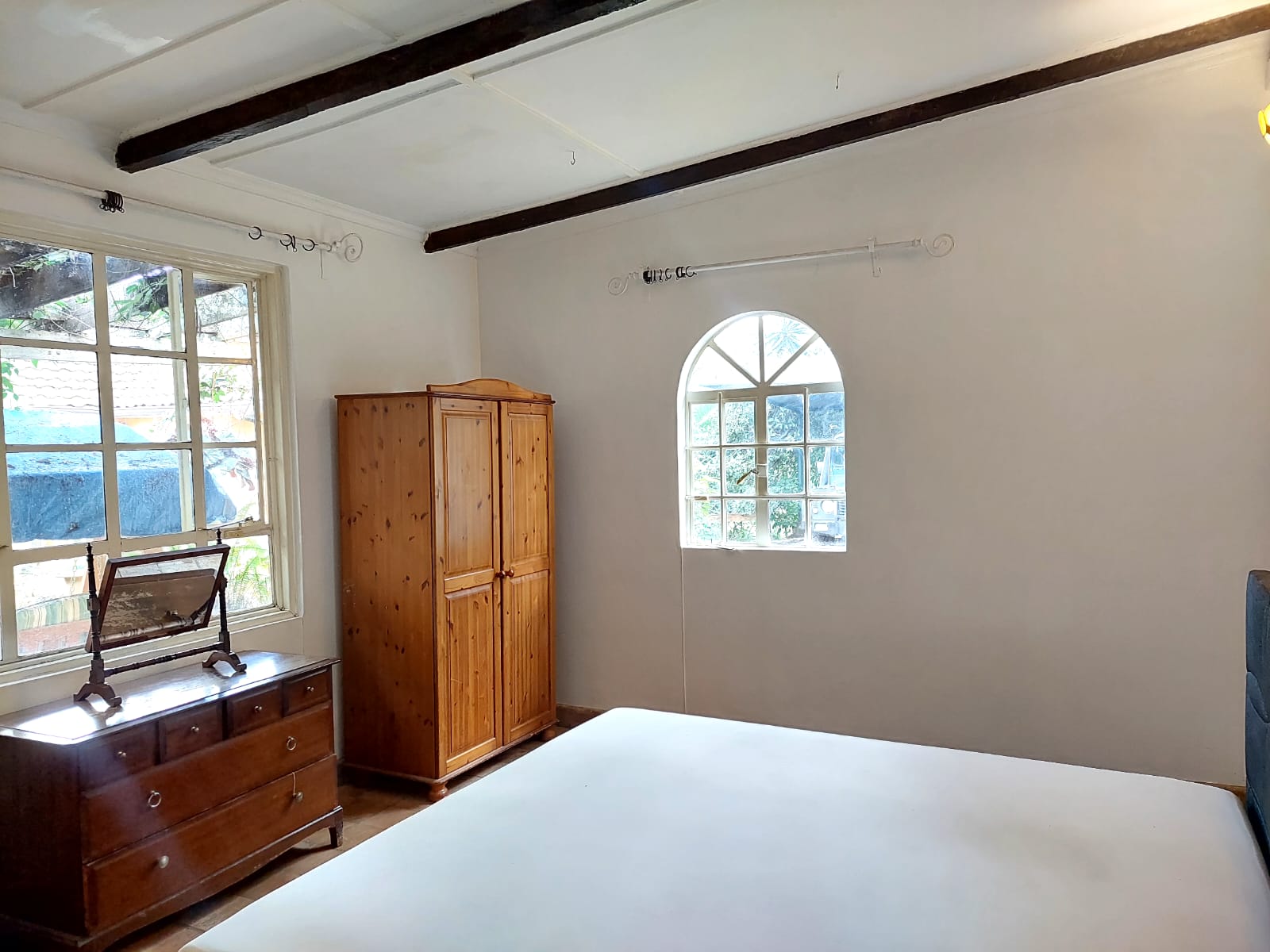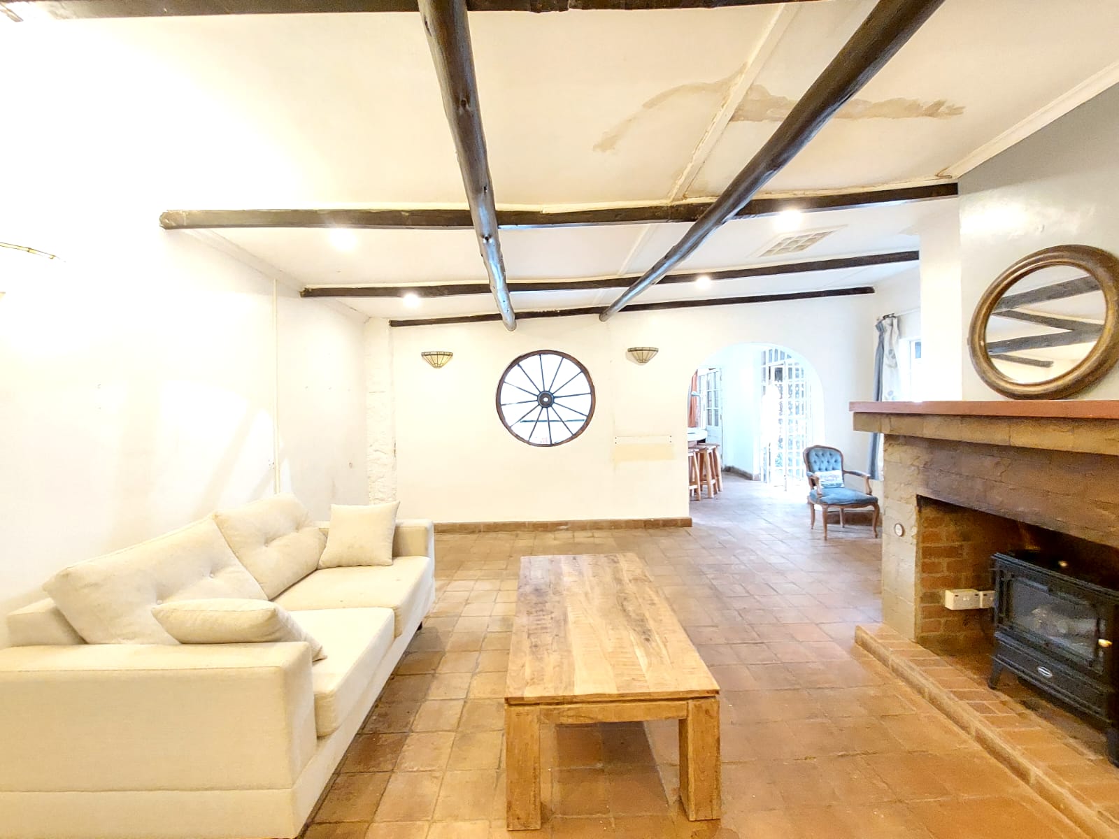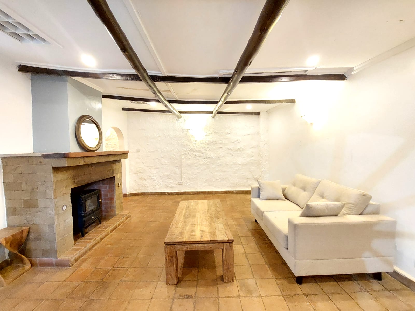 Lovely two bedroom cottage . Gated community. Kitchen, one bathroom, living room with fireplace, spacious bedrooms, shared swimming pool. Rent 100k (pets not allowed)
